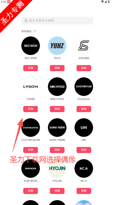 1、在软件首页可以看到各种偶像明星,点击喜欢的进入。