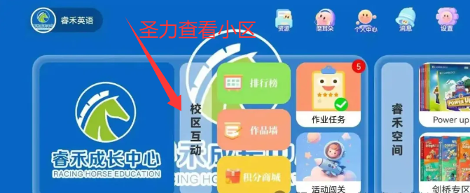 1、查看校区互动功能,查看班级排行榜和作品墙