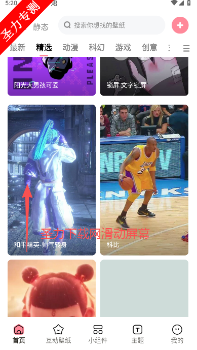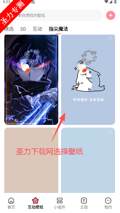 1、在软件首页点击屏幕下方互动壁纸字样切换页面。