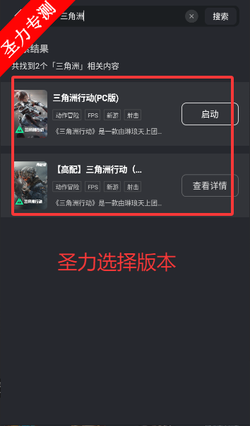 2、找到三角洲行动的多个版本,并选择一个