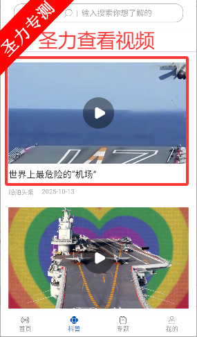 2、科普页面中可查看最新的新闻视频