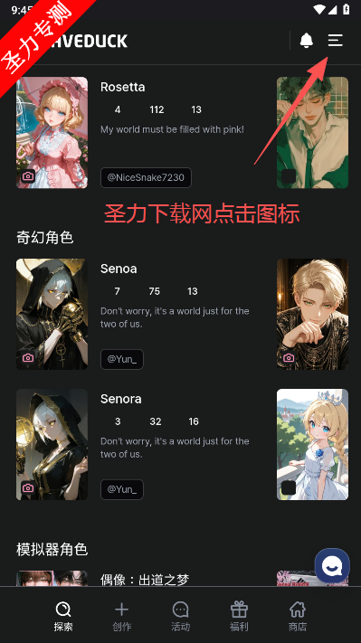 2、进入软件首页便可以看到各种推荐的ai角色,可以选择喜欢的角色点击。