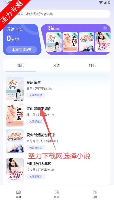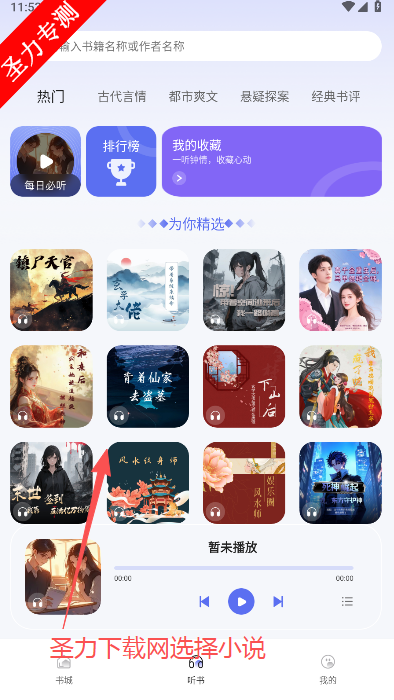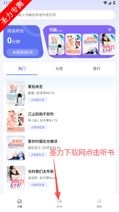 1、在软件首页点击屏幕下方中间的听书字样切换页面。