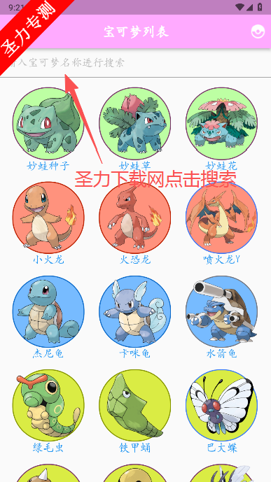 3、可以看到各种热门宝可梦,点击上方搜索框可以查找喜欢的宝可梦。