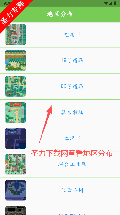 4、在地区分布页面还可以查看不同地区分布着哪些宝可梦。