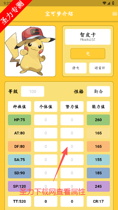 能力值模拟器:用户可输入个体值、努力值等参数,计算宝可梦的最终能力值,优化培养方案。