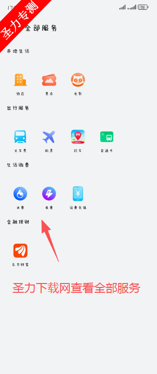 3、进入软件首页可以看到各种生活服务功能,点击全部跳转。