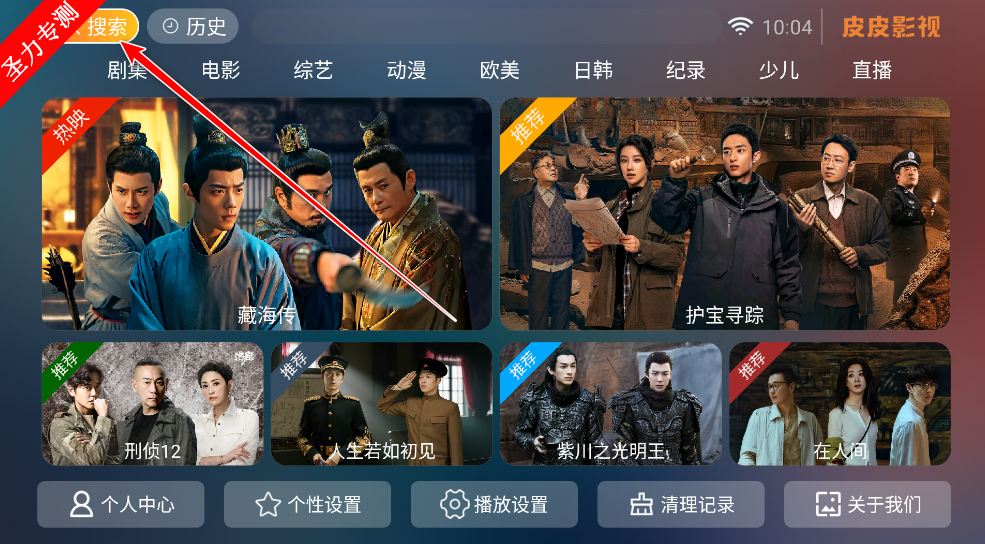 1.请在本站下载安装并打开最新版本的皮皮影视,可以看到首页上方有着最新的电影、综艺、动漫、少儿等板块内容。