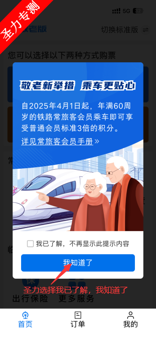 敬老版:主要针对老年用户,特别是 60 岁以上的常旅客会员,购票可享 15 倍积分,在票量充足时还能优先安排下铺。