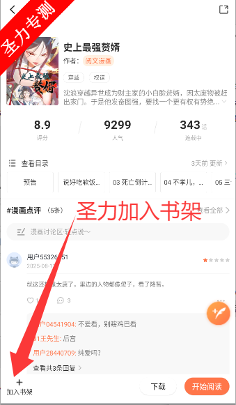 在漫画详情页中,查找并点击“下载”或“离线阅读”按钮。