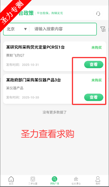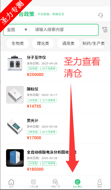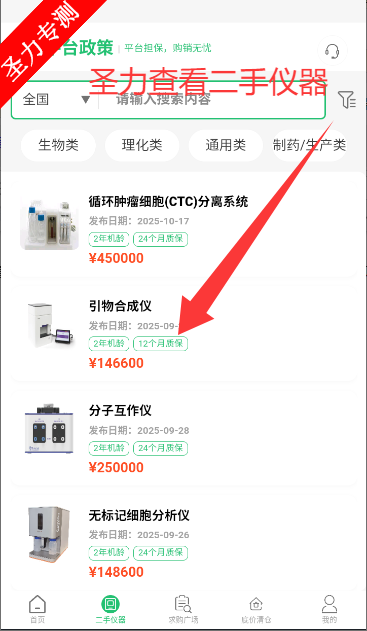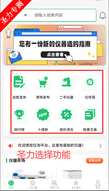 智能交易匹配:提供全新未拆封仪器特惠专区与二手设备交易市场,支持关键词搜索、价格区间筛选及智能求购匹配功能,快速连接供需双方。