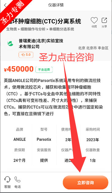3、点击进入详情页可以查看仪器的详细情况以及咨询购买