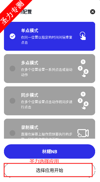 2就可以选择应用启动连点器
