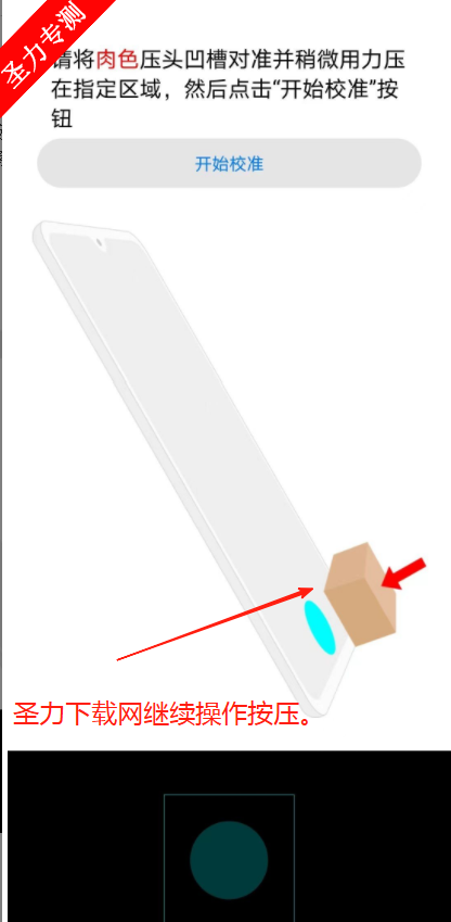 3、跳转页面开始进行指纹校准,需要根据上方提示将黑色压头凹槽对准指定区域。