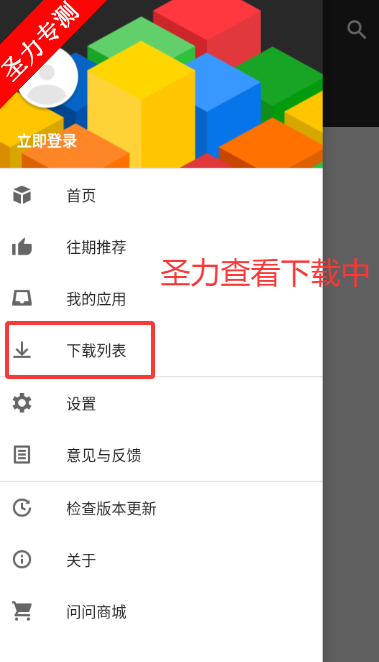 2、在侧拉菜单中可以点击下载列表找到已下载的APP