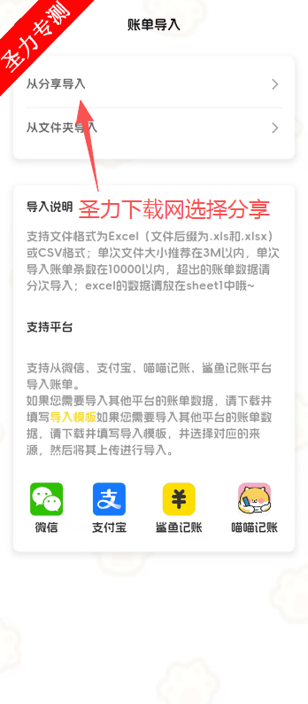 3、再点击上方的分享导入功能进入。