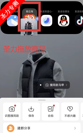 智能服务推荐:原子岛基于AI能力提供场景化服务跳转,例如选中地址文字后,系统会自动推荐地图应用;拖动图片至原子岛左右区域时,可横向选择"拍立淘"或"拍照淘"功能实现无水印保存或商品搜索。