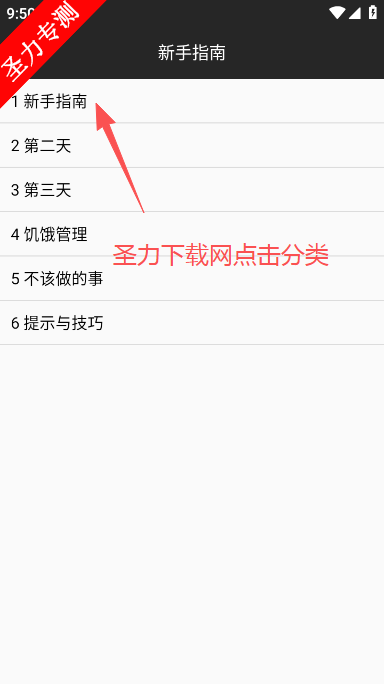 3、再点击新手攻略选项进入。