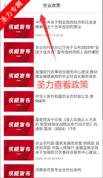 1、在政策发布板块中可以看到最新发布的农业政策内容