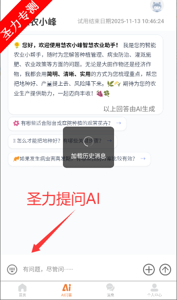 3、在AI问答中可以询问一些简易的农业相关问题