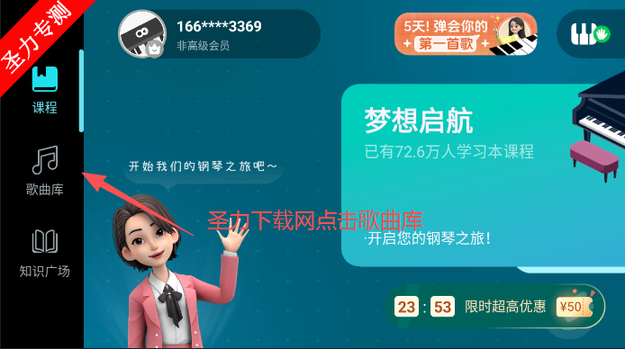 1、在软件首页点击左侧歌曲库。
