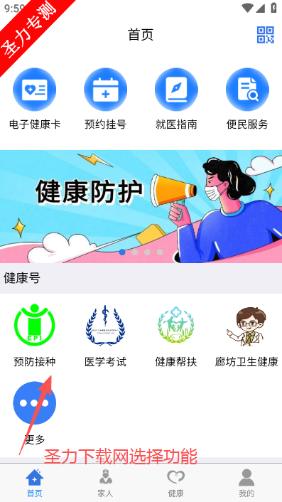 3、进入软件首页可以看到各种健康功能,点击选择功能进入。