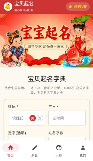 2. 提供姓名五格评分、音律分析、字义解读等功能,结合生辰八字等传统要素,智能生成吉祥好名并附解析。