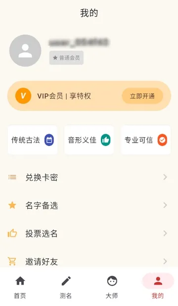 5、点击大师,可邀请大师来人工起名