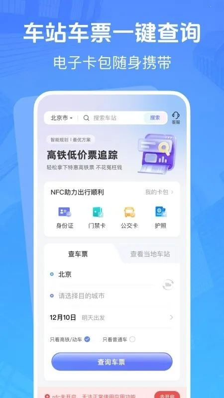 高铁低价票追踪是车票查询软件,能一键查站点与票价,设智能起售助手,支持NFC读卡。有会员积分联动等特色,具备安全购票保障等亮点,界面简洁操作流畅,可精准高效查询,自动追踪低价票。