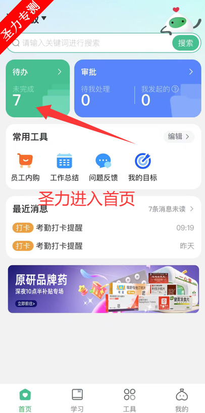 1、进入首页查看待办事项