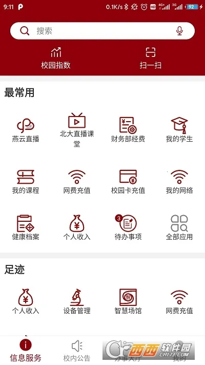 便捷操作体验:支持手机上进行网上办公、网费充值、查询空闲教室等,操作简单方便,让师生随时随地处理事务。