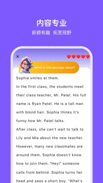 2. 一课一定制,智能匹配难度适宜的阅读材料,让孩子读得懂有收获。