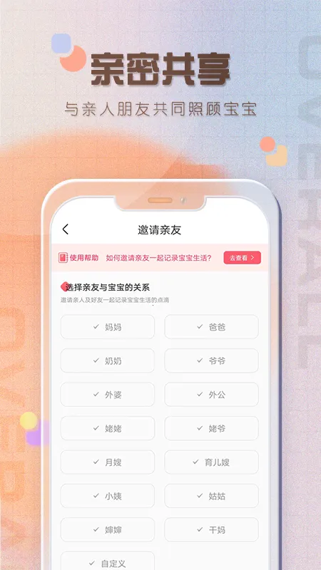 3. 亲友协作共享:支持多人共享、云端同步,邀请亲朋好友共同记录宝宝信息,即便多人照顾也不会遗漏记录,还能一起分享开心时刻,减轻育儿疲劳。