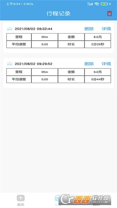 2、行程记录功能可记录每笔行程,行程结束后计价结果清晰,方便查看。