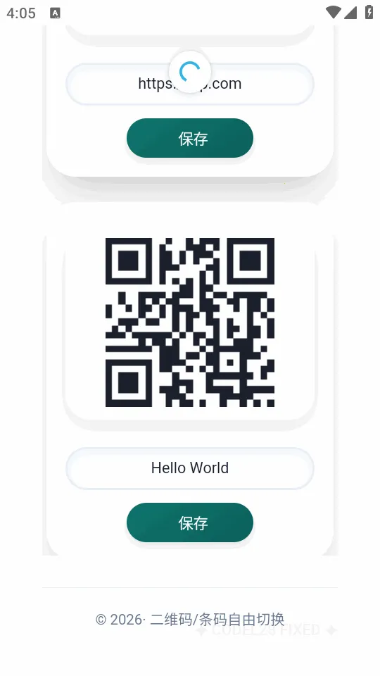 如果你需要批量生成二维码,那这款软件绝对适合你!它支持批量生成二维码,极简风格,安装包超小,还不需要联网。即装即开即用,非常方便。你可以在文本框中一行输入一条内容,比如网址、文字、联系方式等,点击批量生成,就能自动为每一行内容生成独立的二维码卡片。每张卡片下方还有输入框,能自定义显示文字,方便区分。它支持单独下载任意一张卡片为图片,也能点击保存全部长图,把所有卡片拼成一张长图片保存。生成的码保存也很简单,打开已生成的二维码,点保存按钮,获取本地权限后就能在相册查看。而且它还能生成条形码,在输入框填入数字或字母,比如快递单号、商品编码,点击生成条码就能得到清晰图片,采用通用的Code128格式,绝大多数扫码设备都能识别,点击保存就能随时打印使用。软件还能在批量二维码和单一条码之间自由切换,还会记住上次使用模式,下次自动显示,纯本地运行,没网络也能正常生成并保存二维码和条码。