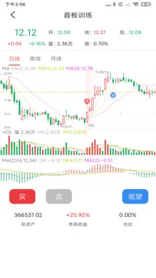暴富K线训练助手是股民炒股前必练的实用工具。它以大量历史股票数据为基础,提供多种训练模式。双盲训练能复现未知股票、未知时间的真实行情;涨停训练从第一根涨停板开始,连板训练以连续涨停板开启。训练数据分析以十万模拟启动资金累计训练,按资金成长成就给予对应能力头衔,每次训练还有全方位复盘。交流社区可让股友近距离畅聊,陪伴大家成长。新版特性更是贴心,新增盘感训练模式,还修复了一些已知问题。有了它,就像经历了N次牛熊转换,投资不再盲目。巴菲特说成长要经历完整牛熊转换,暴富K线训练助手能助力大家成长,早日实现暴富梦想,让炒股之路更稳更安心。
