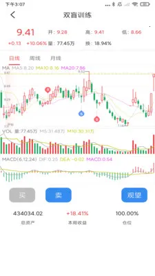 1、双盲训练,未知股票与时间,真实行情复现,助您积累实战经验。