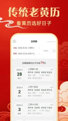 内容极为丰富,不仅有黄历相关,还涵盖今日运势、节气提示、纪念日换算等,传统文化精华每日可览。