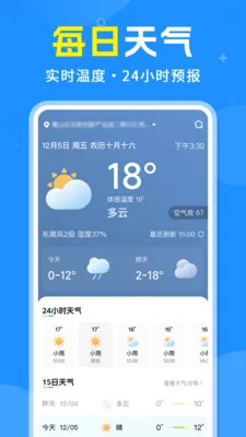 准候天气 2026 能时刻提供精准及时天气信息。有定位与实时监测功能,确保数据准确即时。还含公历农历日历,能算节气等。更有 7 日天气预报,助用户方便查看天气,从容安全出行。