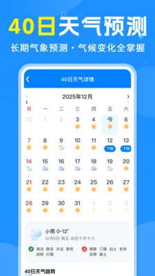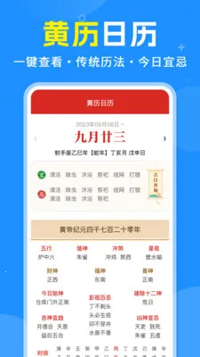 3. 信息丰富:不仅有准确的公历农历日期对照,采用权威天文算法计算二十四节气、传统节日和闰月信息,还能让用户查看未来7天的天气预报,方便安全出行。