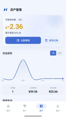 拥有资产管理模块,可查看余额收益记录与提现记录,还能发起提现申请。