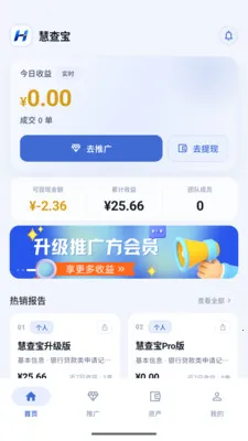 慧查宝 2026 官方最新版本是面向推广方的业务工作台,可管理报告推广订单进展、团队协作与收益结算,具备报告推广、订单管理等功能,有错误修复和小改进,为推广方提供业务管理等能力。