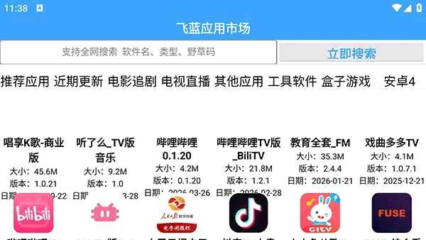飞蓝市场Pro版是一款超棒的电视应用软件库。它能满足你对各种影视app、辅助工具、盒子游戏等资源的需求。最新版本更新内容超值得期待!这里有丰富多样的资源,不管是影视、游戏还是工具类软件,都能轻松找到。不仅量上增加,质也大幅提升,全方位满足不同用户需求。所有资料都经过仔细挑选审查,安全可靠,让你放心使用。软件库界面简洁直观,上手轻松。它提供免费资源,能玩各种想玩的游戏,做更多有趣的事。所有软件免费下载,涵盖大量优质电视应用,无需付费就能畅享多样内容。而且上架应用都经过人工审核与病毒扫描,安全无捆绑,无广告干扰,完全免费使用,降低智能电视使用门槛,赶紧来体验吧!
