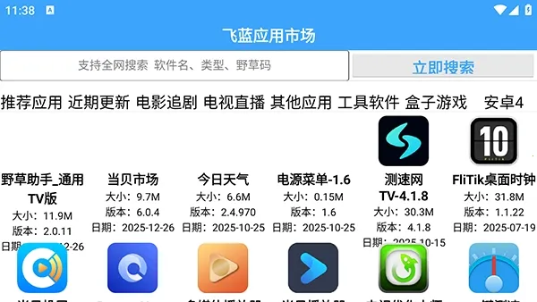 飞蓝市场Pro是专为电视应用打造的软件库,集合影视、游戏等资源。资料经筛选审查,安全放心。界面简洁,功能丰富,免费下载且定期更新,涵盖大量优质应用,满足多样需求,无广告干扰,免费无隐藏收费。