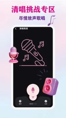 专属清唱挑战板块,专注唱功,记录练歌哼唱。全程免费无隐藏付费,界面简约易上手,还能高清保存作品。