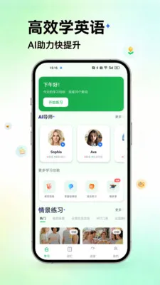 AI驱动,个性化学习:搭载AI导师系统,提供多场景口语陪练,精准匹配学习节奏,助力高效提升。
