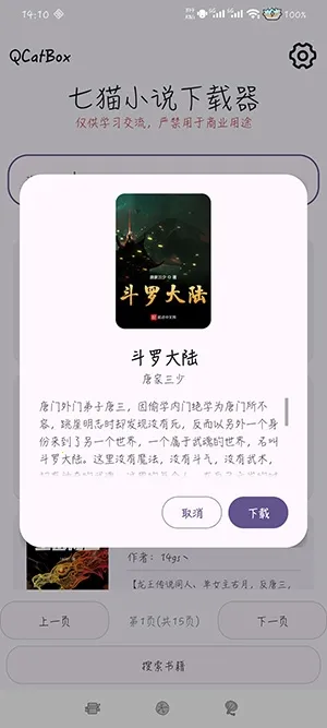 QCatBox七猫小说下载器是高效抓取工具,用智能正文解析技术,精准提取主流网站小说章节,过滤杂质。支持缓存、批量下载,无广告弹窗,界面简洁,还能设置下载位置,按步骤即可轻松下载小说。