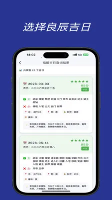 精准择吉,涵盖结婚、开业等多种场景,根据八字智能推荐良辰吉时。