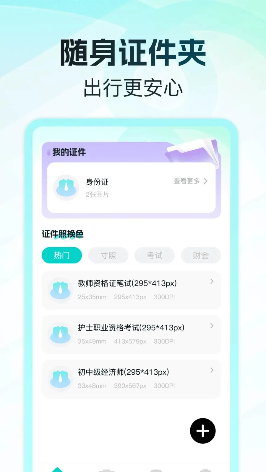 电子证件网络管家2026最新版本,日常无需专业工具就能自制证件照并整理归纳。有多种常用尺寸,涵盖多场景。上传照片可自动分离人像、换背景,还能统一收纳证件资料,按用途分类,方便查找与复用,含电子证件夹等功能。
