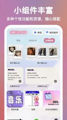 小组件Top Colorful是专业手机桌面美化工具,集组件编辑、图标自定义、壁纸设置等功能于一体。有丰富组件、海量壁纸、多样图标制作素材,操作简单易上手,能帮你轻松打造个性化手机桌面。